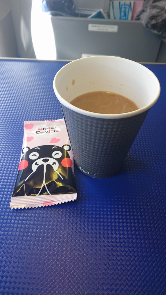 食後のコーヒーも頂いて。九州行きだからかくまもんのクッキーも。